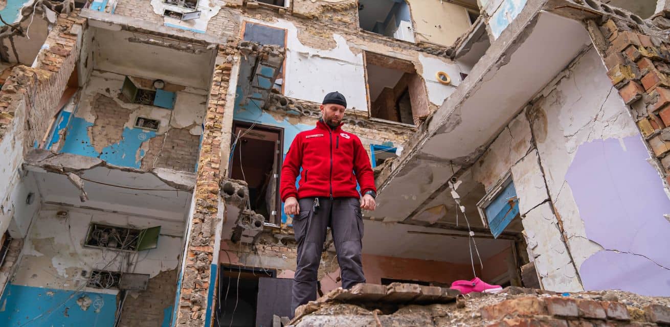 Als één van de zevenhonderd noodhulpverleners in Oekraïne heeft Oleksandr al veel meegemaakt. Vóór de escalatie van het conflict stond hij vooral op festivals en sportevenementen om eerste hulp te verlenen. Maar sinds 2022 is zijn werk volledig veranderd. Nu redt hij levens wanneer steden worden aangevallen.