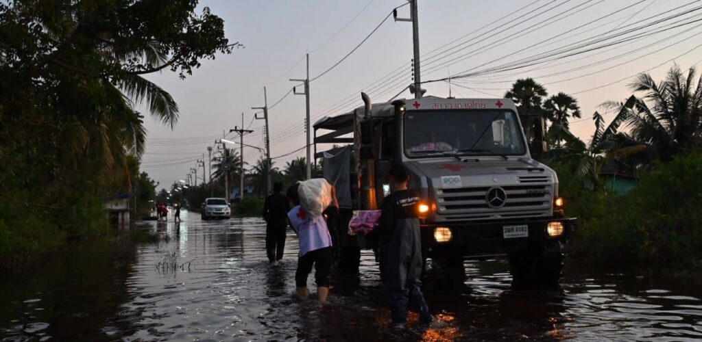 In het zuiden van Thailand beleefden miljoenen mensen de natste dag in drie eeuwen. Op 21 november viel er 335 millimeter regen in één dag, een enorm record. Deze hoeveelheid regen zorgde voor overstromingen. Hulpverleners van het Rode Kruis in Thailand helpen bij het evacueren van mensen en delen hulppakketten uit.