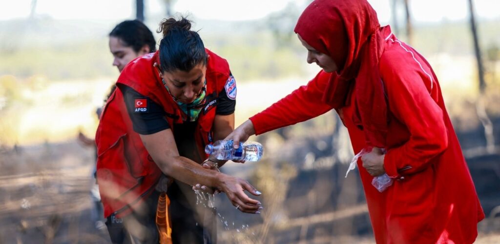 Vrijwilligers van de Turkse Rode Halve Maan en het Griekse Rode Kruis delen water, voedsel, zonnebrandcrème en ORS uit, en verlenen eerste hulp. In Griekenland helpen mobiele teams ook geëvacueerde bewoners én achtergelaten huisdieren. Ook ondersteunen ze de brandweer bij het blussen van de branden. Daarnaast wordt al vóór een verwachte hittegolf een zogenoemd Early Action Protocol geactiveerd: vrijwilligers trekken dan al preventief de straat op om mensen in een kwetsbare positie te bereiken met verkoeling en gezondheidschecks.