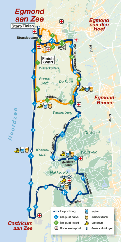 Wanneer het startschot van de 51e Egmond Halve Marathon klinkt en de lopers als één golf richting strand trekken, zijn de Rode Kruisers al langs het parcours gepositioneerd. Op het strand, waar de wind vrij spel heeft en de gevoelstemperatuur naar min 10 graden jaagt, helpen ze verkleumde lopers met stijve spieren. Een bemoedigend woord, een snelle check, soms even rust – vaak is dat al genoeg om iemand weer op weg te helpen. De Egmond Halve Marathon wordt algemeen beschouwd als de zwaarste halve marathon van Nederland, vanwege het uitdagende parcours met strand, duinen en klimmetjes, vaak gecombineerd met wind, zand en deze keer ook erge kou.