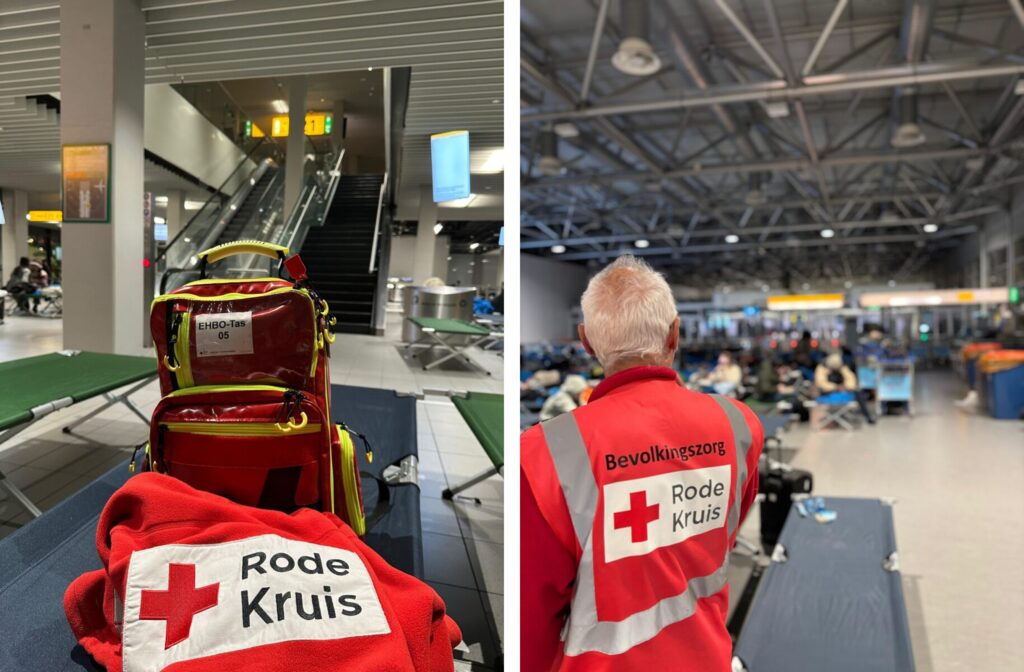 Het Rode Kruis schoot te hulp en bood ondersteuning aan reizigers die niet verder konden reizen. Vrijwilligers waren op verschillende plekken in de terminal aanwezig om een luisterend oor te bieden en, waar nodig, eerste hulp te verlenen. Zij deelden water, dekens en soms ook voedsel uit aan mensen die al uren, en in sommige gevallen zelfs een hele nacht, moesten wachten. Vooral kwetsbare groepen zoals gezinnen met jonge kinderen, ouderen en mensen met een beperking kregen extra aandacht van de hulpverleners.