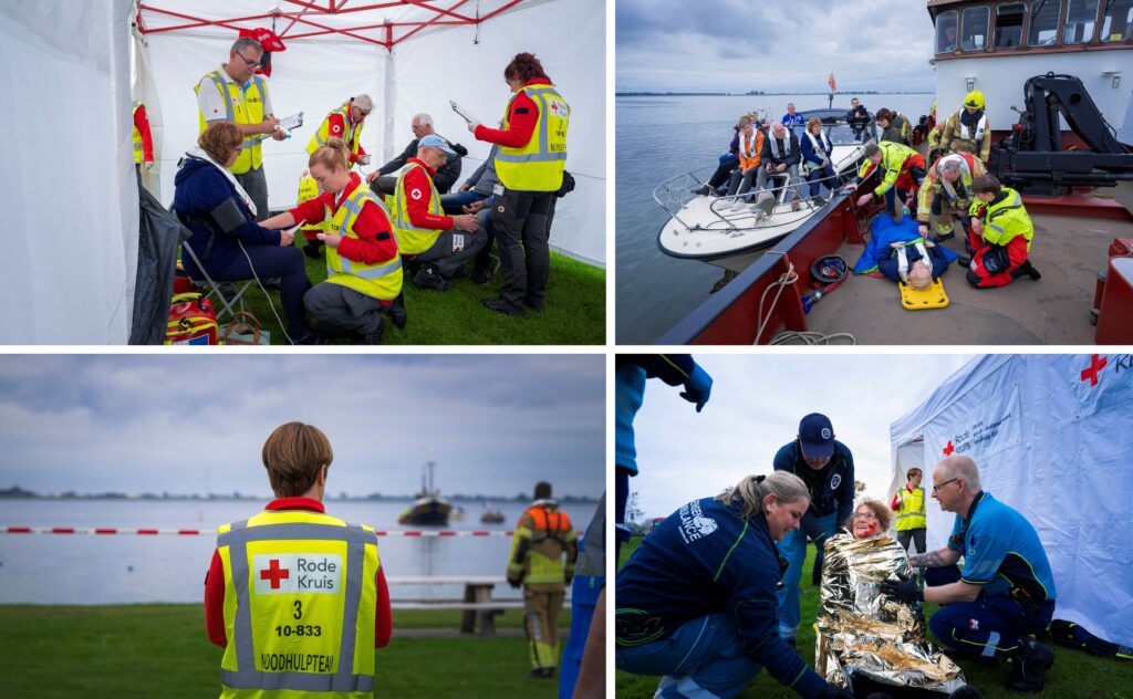 Op 11 oktober 2025 vond op het Amstelmeer een grootschalige reddingsoefening plaats, waarbij meerdere hulpdiensten intensief samenwerkten. Het doel van deze dag: elkaar beter leren kennen en de samenwerking verbeteren. Onze regio Noord-Holland is een waterrijk gebied en daarom is het cruciaal om gezamenlijk te oefenen met incidenten op het water. Als Rode Kruis mochten wij op uitnodiging van de brandweer meedoen aan deze oefening. Voor deze oefening werd een realistisch scenario nagebootst: een passagiersschip raakte betrokken bij een aanvaring en liep schade op. De kapitein wist het schip op een zandbank tot stilstand te brengen, waardoor het niet kon zinken. Tijdens de oefening ontstonden extra noodsituaties: