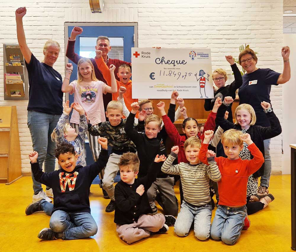 Basisschooldirecteur André Romeijn bleef maar schrijven, toen hij cijfertje voor cijfertje het bedrag bekend maakte van de sponsorloop op zijn school. Niemand op de Koningin Emmaschool in Schoonhoven had verwacht zo’n fantastisch hoog bedrag in te zamelen toen de plannen werden gesmeed voor deze goede-doelenactie. Maar liefst €11.849,75 liepen de kinderen bij elkaar door heel, heel, heel veel rondjes te lopen. En wij mochten de cheque in ontvangst nemen!
