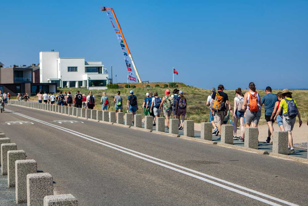 En dan klinkt het startschot. Wandelaars van de 42 kilometer vertrokken in alle vroegte, toen de temperatuur nog aangenaam was. Later op de ochtend volgden ook de kortere afstanden. Aanvankelijk was het rustig. De deelnemers waren nog fit, hadden nog water in hun flessen en de warmte was nog te doen.