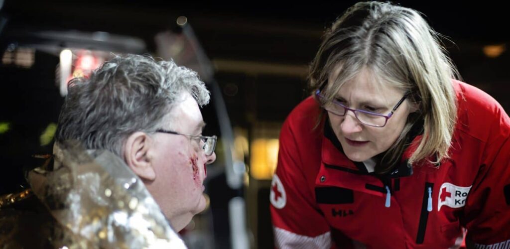 Wie in Nederland direct hulp nodig heeft, kan rekenen op het Rode Kruis. Ruim twintig duizend vrijwilligers staan dag en nacht paraat. We helpen bij het evacueren van slachtoffers, bieden medische ondersteuning en doen er alles aan om kwetsbare mensen beter voor te bereiden op noodsituaties.